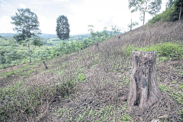 De foto vertelt het allemaal. Ooit leefden wilde dieren in de bossen rond het dorp Ban Moo 9 (Nan). Kudden stieren en olifanten zwierven er in het regenwoud, waar de rivier Nan doorheen stroomt. Maar de afgelopen 20 jaar is het bos ten prooi gevallen aan commerciële landbouw. Boeren knabbelden steeds meer bos van het gebied af om er maïs te verbouwen.