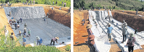 Hoog in de noordelijke bergen is water schaars. In Lampang hebben bewoners vijvers aangelegd en bekleed met latex. Het water sijpelt daardoor niet meer weg in de grond. Beton zou ook kunnen, maar is vijfmaal zo duur. Dankzij de vijvers kunnen de bewoners nu gewassen blijven verbouwen en hoeven ze niet meer in het droge seizoen als drugskoerier een centje bij te verdienen.