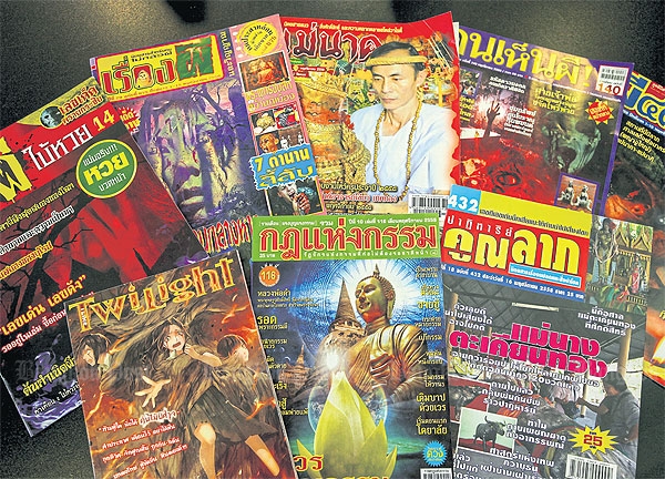 Naast alle tijdschriften over amuletten biedt een typische boekwinkel in Bangkok ook een ruim assortiment aan paranormale bladen over geesten, karma, wonderen en het bovennatuurlijke. De markt met horror tijdschriften telt 18 verschillende titels. Op de cover angstaanjagende tekeningen van geesten, op de achterkant tempels en amuletten, in de tijdschriften verhalen die door lezers zijn geleverd, sprookjes, trivia over geesten en veel informatie over lucky numbers, geleverd door de geesten.