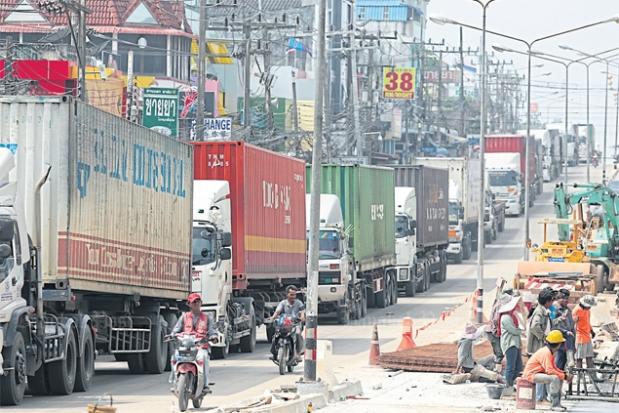 Foto: Het verkeer bij de grenspost Sado is nu al verstopt. Dat belooft wat als de SEZ van de grond komt.