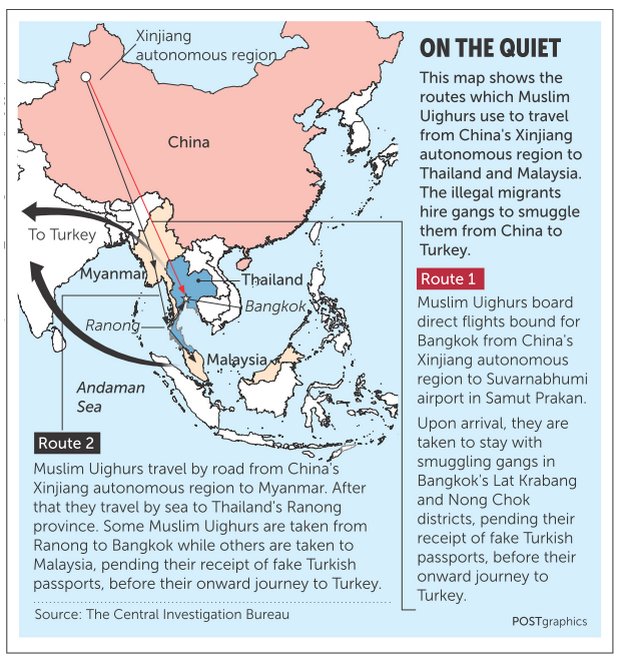 Politie en leger hebben de opdracht gekregen deze maand extra alert te zijn en vermeende smokkelnetwerken in de gaten te houden. De afgelopen twee jaar zijn volgens een bron de autoriteiten doorgegaan Uighur vluchtelingen te arresteren. [Nooit iets over gelezen] Er zouden nu 61 gevangen zitten.